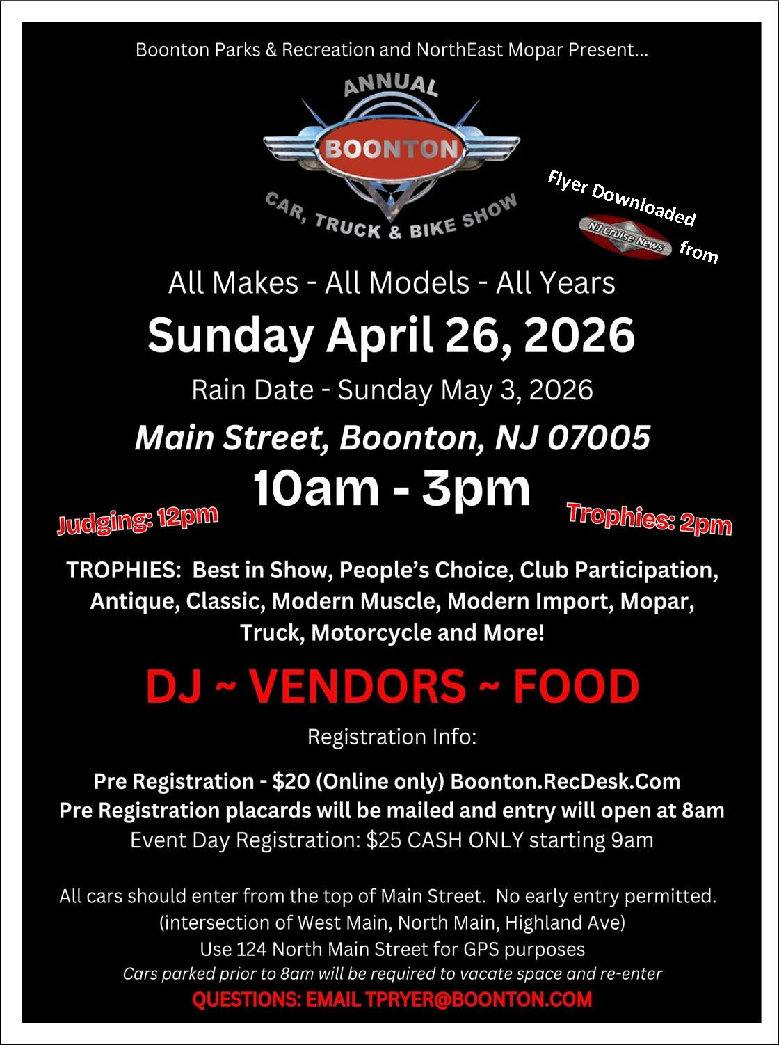 NJ Cruise News is not Responsible for any changes in Date, Time, or Change of location. Please contact your local Cruise.