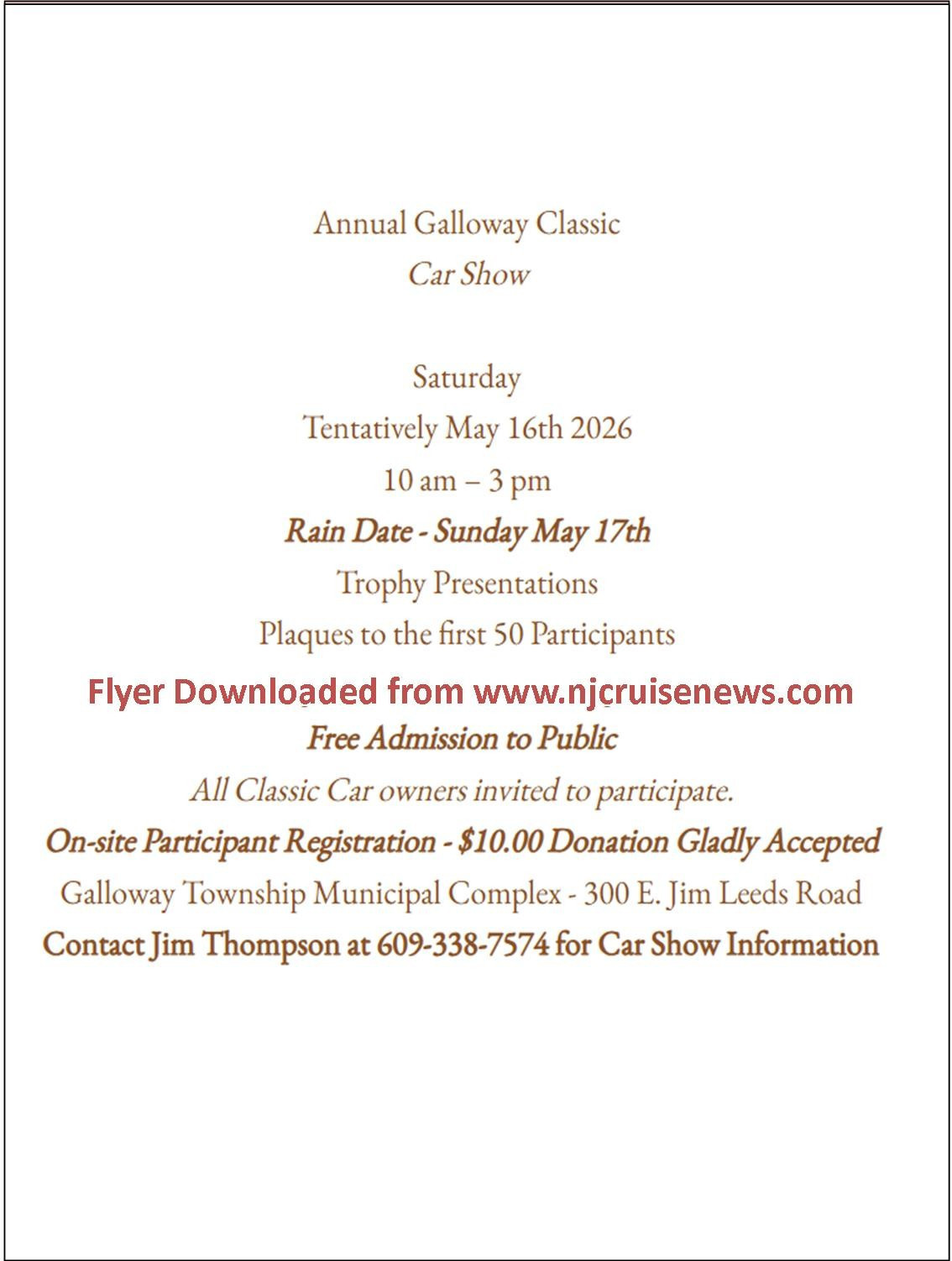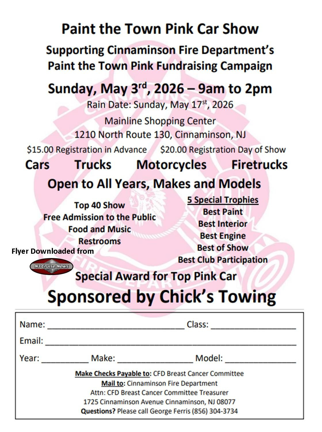 NJ Cruise News is not Responsible for any changes in Date, Time, or Change of location. Please contact your local Cruise.